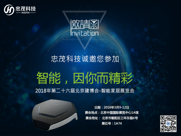 2018年3月9日~3月12日,忠茂科技将在"中国(北京)国际智能家居展览会"与您见面,忠茂诚邀您莅临现场参观。
